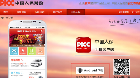 通过手机浏览器登陆官网wap.picc.com下载并安装即可。