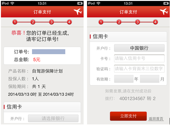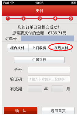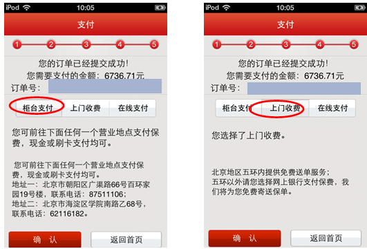 确认投保信息后,有三种支付方式可以自由选择。在线支付方式为信用卡支付,点击确认按钮,完成支付啦。分分钟搞定,妈妈再也不用担心我给爱车购买车险喽: