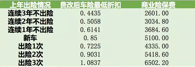 费改后的车险折扣和上年是否出险挂钩了。以下图为例(假设新车商业险基础保费为6000元):