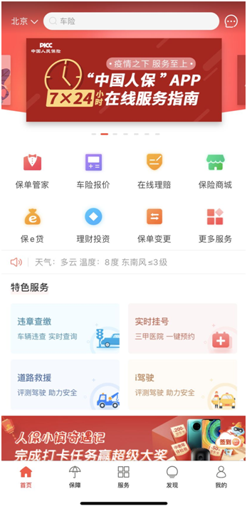 人保财险温馨提示广大保险消费者,疫情期间注意做好自身防护的同时,可关注并绑定公司“中国人保”微信公众号或下载公司官方“中国人保”APP,实现快捷办理投保、免费故障救援、车险保单验真、车辆预约年检、下载电子保单、自助报案、理赔进度查询等服务。