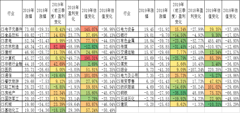 l A股估值的变化方向:2019年逆周期政策持续发力带来A股估值水平的全面修复,影响估值的利率、风险偏好、盈利预期等因素全面转正。2019年美联储货币政策由鹰转鸽,带动全球进入宽松阶段;国内政策由去杠杆转为稳杠杆,2019年保持流动性合理宽裕;减税降费等多项政策提升企业盈利预期。2020年A股估值需要由中枢视角重新审视,估值分化或将加剧。